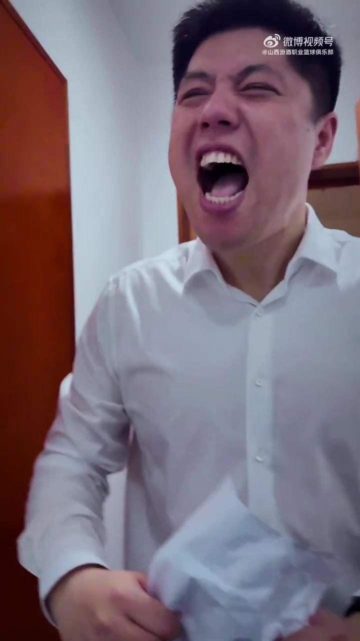 很激动!潘江走进更衣室后疯狂呐喊庆祝鼓励球队坚持打下去