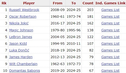 据统计,这是小萨国王生涯的第50次三双,队史第2多,仅次于大O(176)。生涯第68次三双,能排到历史三双榜第10位。