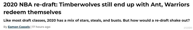 勇士队看走眼!在新赛季即将到来之际,美媒《fansided》预热重排2020年NBA乐透秀,其中状元郎不变,哈利伯顿飙升至榜眼。