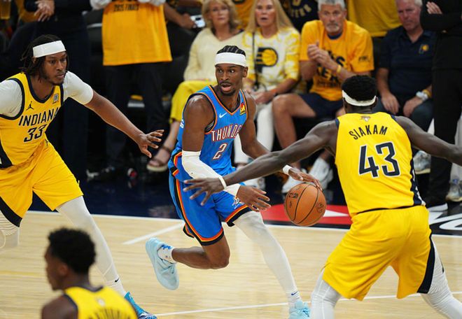 雷霆从21-22赛季起,每年一个台阶,21-22赛季24胜58负;22-23赛季40胜42负;23-24赛季57胜25负;上赛季68胜14负。从上赛季起,亚历山大打法悄然发生变化:从原来的维持常规火力输出,变成兜底的角色。随着杰威和霍姆格伦的崛起,亚历山大通常会让队友先得分,这一点和勇士的库里很像,如果实在胶着或者处于劣势,自己再来!与此同时,亚历山大已经连续三个赛季场均至少30分5篮板5助攻!还有一个数据,亚历山大上赛季总决赛前4场,关键时刻拿到14分(后三场没关键时刻),历史第三!