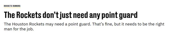 这些都先不说了,结论很简单:如果火箭队今年真的决定通过交易引进控球后卫,那一定要选对人。