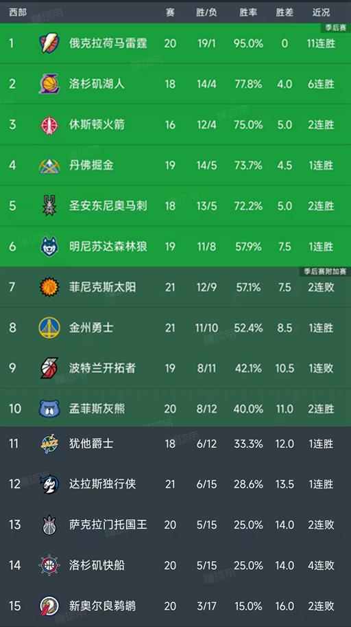 北京时间11月30日,今日的NBA常规赛结束了所有比赛,我们一起看看西部积分榜的变动,主要的信息如下:掘金130-112战胜太阳,勇士104-96战胜鹈鹕,森林狼119-115险胜凯尔特人、快船110-1