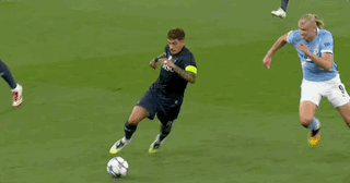 第18分钟,福登直传,哈兰德势成单刀被迪洛伦佐滑铲放倒,主裁判观看录像回放后向那不勒斯队长直接出示红牌,那不勒斯10人作战!