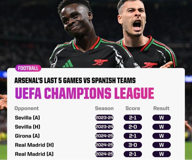 雷速体育9月16日宣 北京时间17日凌晨,25/26赛季欧冠拉开序幕,阿森纳首战毕尔巴鄂竞技。值得一提的是,枪手若今晚客场击败毕巴,他们将成为首支欧战历史第一支连续6场战胜西班牙