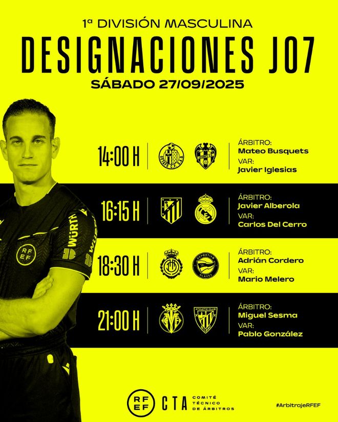 雷速体育9月26日宣 北京时间明天晚上22:15,本赛季西甲首回合的马德里德比战将正式打响,赛前西甲官方公布了本场比赛执法的裁判组成员。其中主裁判由上赛季西甲最佳裁判罗哈斯担任。担任视频助理裁判的则是德尔塞罗。