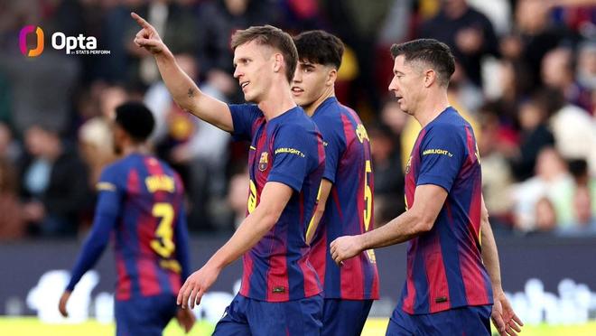北京时间11月29日,在西甲第14轮的比赛中,巴塞罗那在开场不到1分钟就丢球的情况下,依靠亚马尔和奥尔莫的进球半场过后主场2-1逆转领先于阿拉维斯。根据Opta的统计,本场比赛的进球