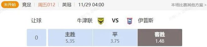 目前竞彩数据来看,给出对伊普斯维奇在客场的支持相当有力,本场看伊普斯维奇胜。