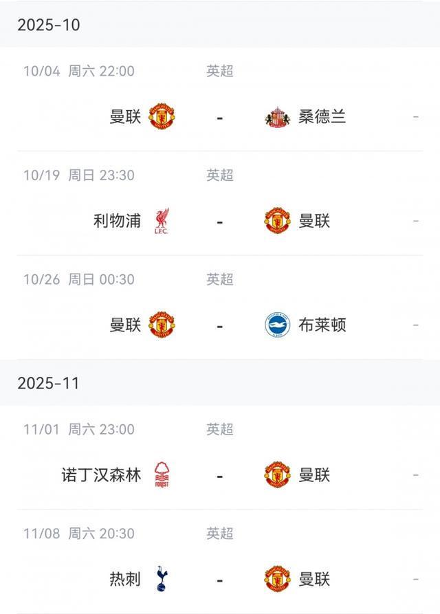 曼联赛程