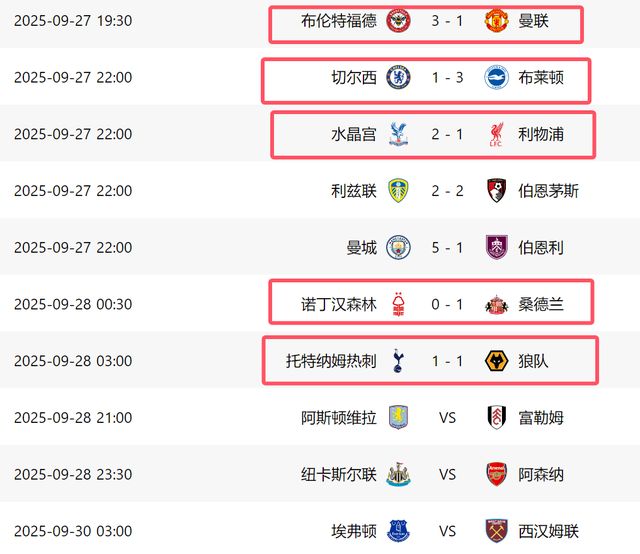 事实上,这一夜英超还有多支强队爆冷。其中曼联在客场惨败给布伦特福德,阿莫林上任至今,他还从来没有率领球队在英超取得连胜。此外切尔西在主场输给了布莱顿,同样让人意外。更绝的是,本赛季一直绝杀对手的利物浦,在客场被水晶宫绝杀,斯洛特终于尝到了被绝杀的痛苦了。接下来,纽卡斯尔将在主场迎战阿森纳,埃弗顿和维拉则分别对阵西汉姆和富勒姆,不知道还会不会有冷门发生!