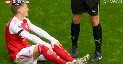 第21分钟,厄德高伸脚拦截受伤,队医上场进行治疗