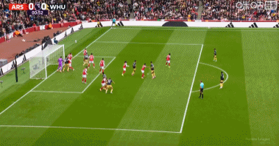 第32分钟,萨卡右路传中,阿森纳禁区围攻连续打门被挡
