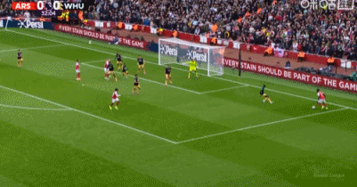 第51分钟,萨卡禁区外远射,皮球一脚踢飞