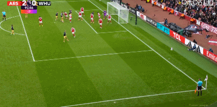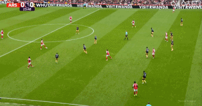 第38分钟,赖斯禁区内推射破旧主,随后选择不庆祝,阿森纳1-0西汉姆联