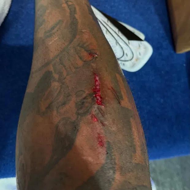 切尔西队长里斯-詹姆斯在社交媒体上展示了在刚刚对阵利物浦一役后他右腿的状况,图中看出他的小腿被鞋钉刮出了一道血口子。
