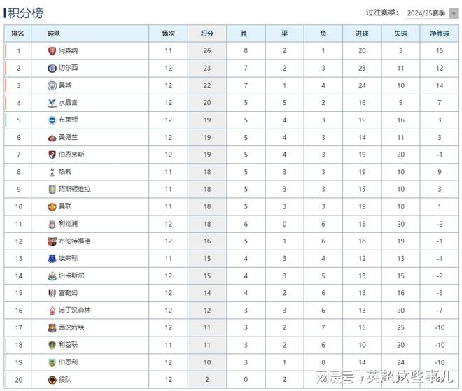 昨晚今晨,英超联赛第12轮激战多场,利物浦主场0-3输给诺丁汉森林,遭到联赛2连败,跌至积分榜下半区;切尔西客场2-0击败伯恩利,升至积分榜第2位,内托和恩佐分别破门;曼城客场1-2输给纽