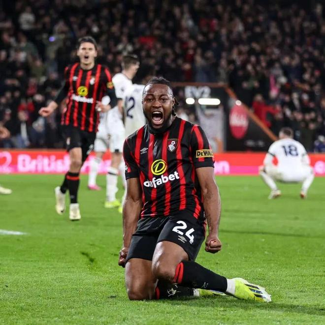 足坛再传重磅消息! 据《每日电讯报》最新报道,曼联将在1月的冬季转会窗全力争夺伯恩茅斯前锋塞门约!这位25岁的加纳国脚已经成为英超最炙手可热的攻击手,而红魔主帅阿莫林对他青