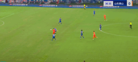 半场补时阶段,卡扎伊什维利接谢文能妙传,胸部停球后右脚推射反角,为山东泰山2-2扳平!