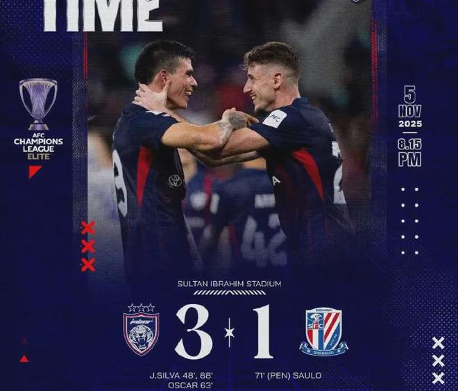 - 亚冠联赛东亚区第4轮,马来西亚柔佛苏丹依卜拉欣体育场,当主裁判吹响终场哨,记分牌上1-3的比分像一记重锤,砸碎了...发表于: 11-06 23:39