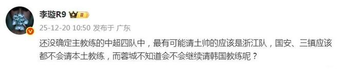 - 2025赛季结束后,中超各大球队都进入招兵买马的过程,其中申花的引援是最引人注目,毕竟最大的鱼货在他们那里。 ...发表于: 12-24 12:11